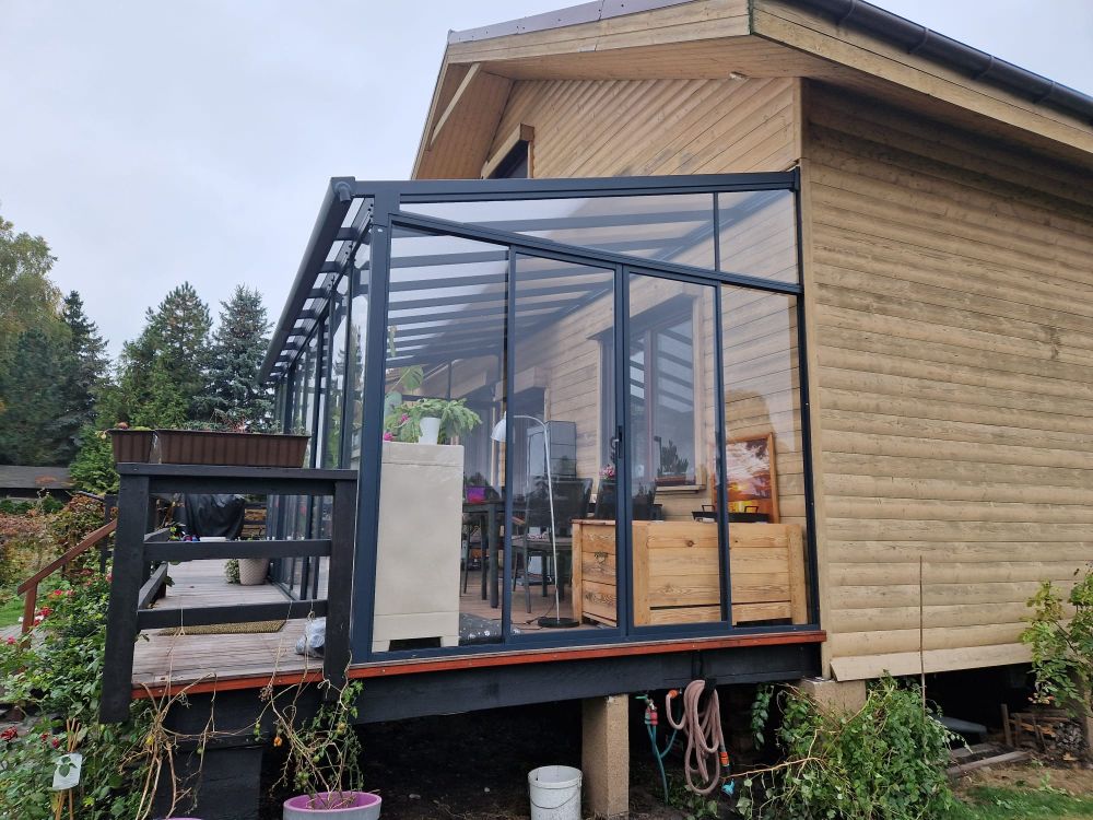 - Szyby zespolone dwuszybowe lub trzyszybowe – gwarantują dobrą izolację termiczną, dzięki czemu będziesz mógł swobodnie korzystać z ogrodu przez cały rok.